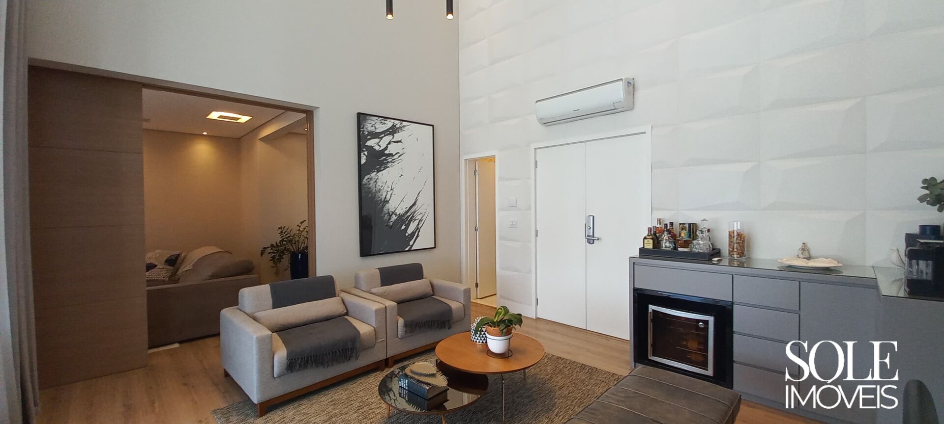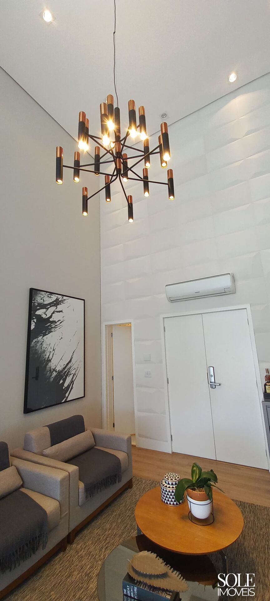 Com 189 m², o imóvel se destaca pela planta inteligente e pelo pé-direito duplo na área social. A sala ampla integra estar e jantar com elegância, permitindo diferentes configurações de layout. A sacada com fechamento em vidro amplia a área útil e garante melhor aproveitamento do ambiente ao longo do ano.