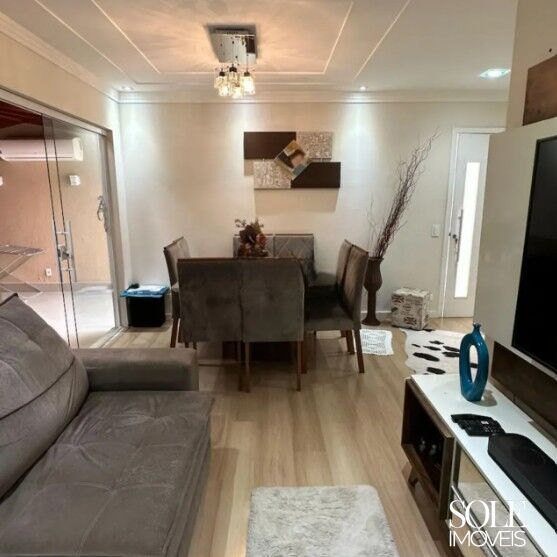 O imóvel conta com 1 suíte e mais 2 dormitórios, todos com armários planejados e ar-condicionado instalado, garantindo conforto em todas as estações. A área social oferece sala de estar e jantar integradas, lavabo e cozinha planejada com diversos armários e mesa embutida, ideal para o dia a dia.