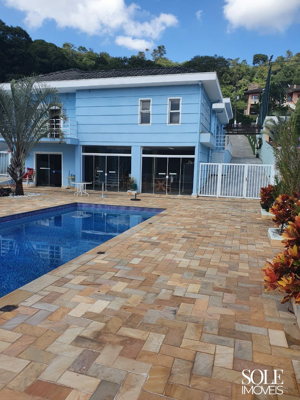 O lazer é um dos grandes destaques da casa. A área externa conta com piscina privativa com vestiário e um salão gourmet equipado com churrasqueira, forno de pizza e fogão a lenha, ideal para receber amigos e familiares. O amplo espaço externo favorece momentos de convivência, descanso e lazer ao ar livre.