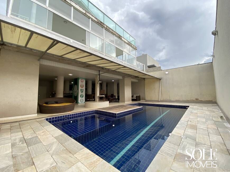 São 580m² de área construída, com 4 dormitórios amplos, todos suítes, equipados com armários planejados, varanda e ar-condicionado. Há possibilidade de reversão para um quinto dormitório, atualmente utilizado como escritório. O imóvel conta ainda com dois escritórios, um no térreo e outro no pavimento superior.
