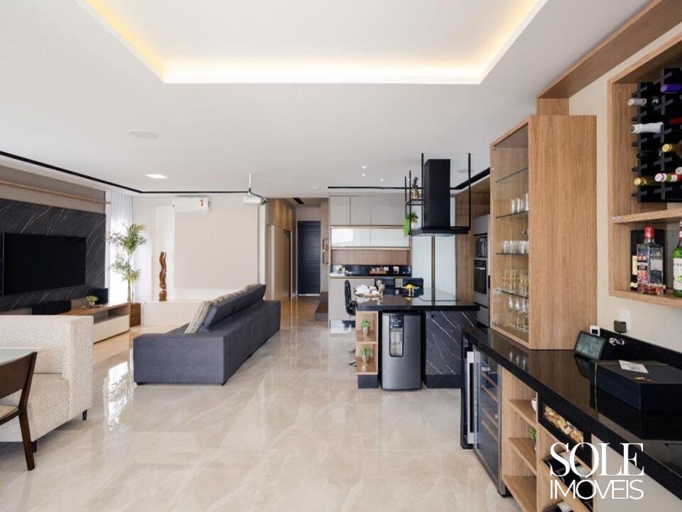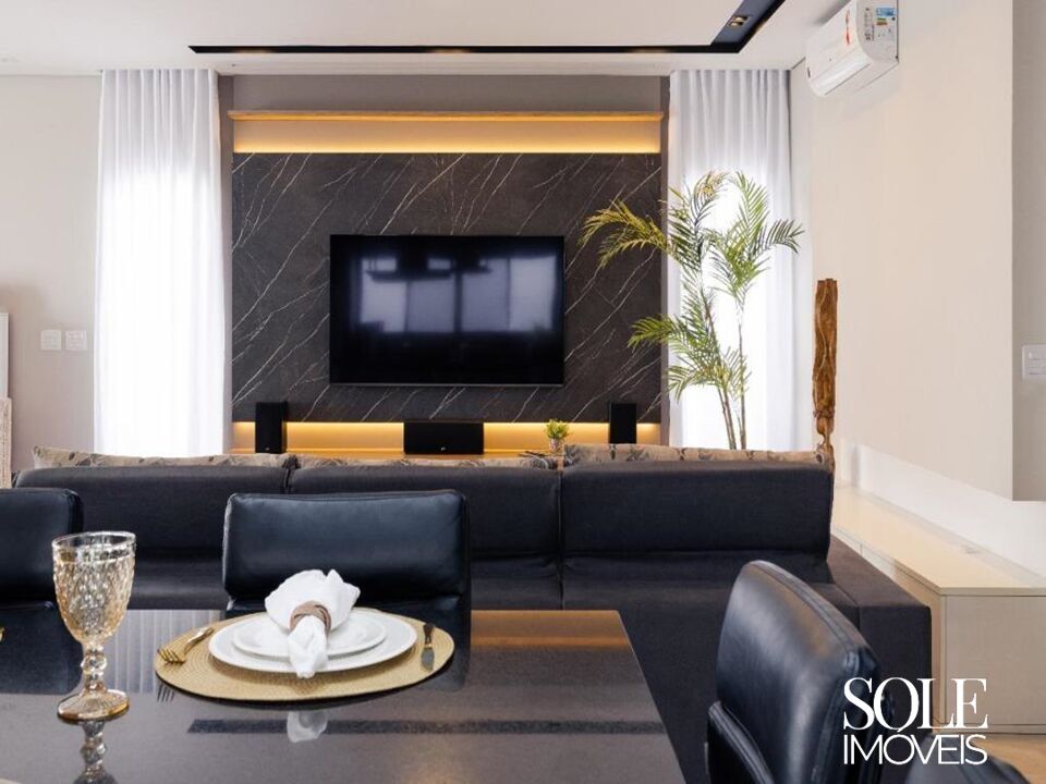 Possui móveis planejados e cortinas em todos os ambientes, ar-condicionado, sistema de energia solar que torna a casa autossuficiente, além de câmeras, alarme e fechadura eletrônica. A piscina conta com aquecimento solar e elétrico, iluminação, cascata e sistema para natação, integrada ao espaço gourmet com churrasqueira. O jardim está pronto para instalação de ofurô e sauna.