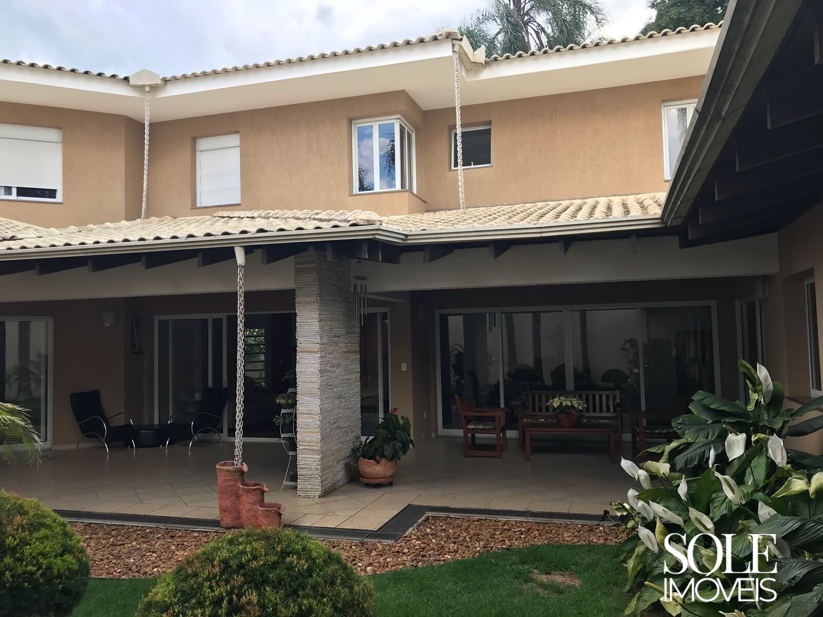 O quintal gramado amplia as possibilidades de lazer e convivência. A garagem comporta quatro vagas cobertas, oferecendo praticidade e segurança.