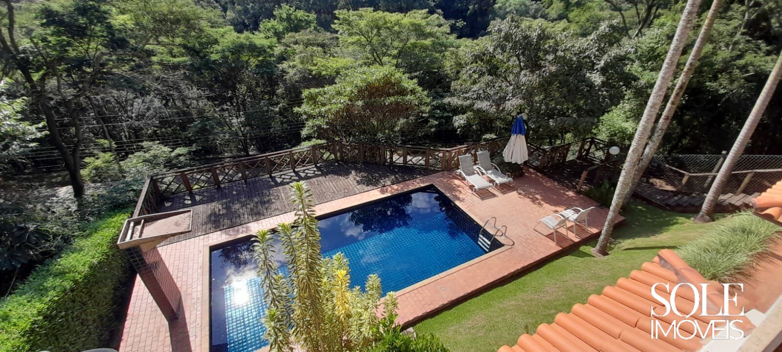 A casa conta com ampla sala de estar e jantar, sala de TV, escritório e cozinha planejada com despensa.